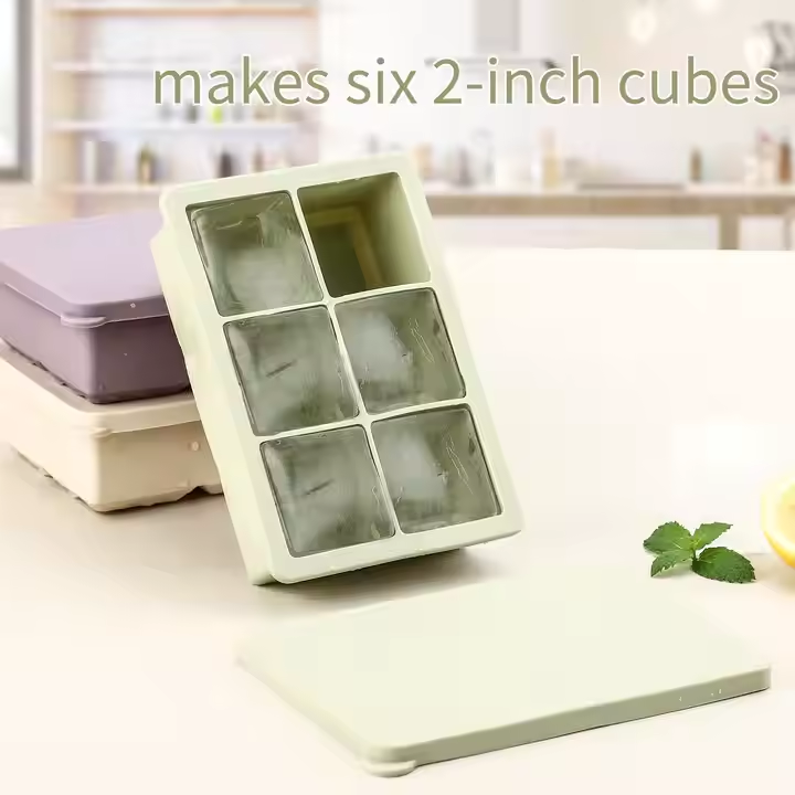 Hot Sale 6 Cavities King Cube Ice Trays Ice with lid 6 holes Large Cube Black Ice Cube Mold Tray for Drink